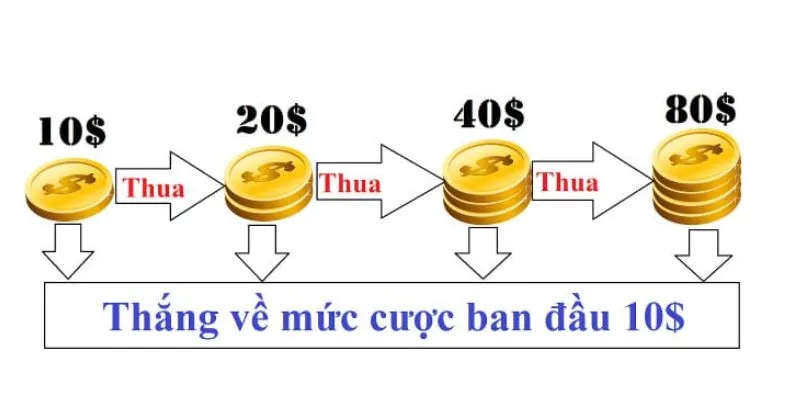 Hiểu theo một cách đơn giản, bạn sẽ thả lệnh cược liên tục với số tiền lần sau gấp đôi lần trước. Nếu như kết quả thua, bạn sẽ chơi không quá 5 lần, còn đối với thắng cược, bạn có thể chơi đến khi muốn dừng lại. Tuy nhiên, để chơi được như vậy thì số tiền đặt ban đầu cần phải được xác định trong khoảng phù hợp, không được vượt quá khả năng tài chính của mình.